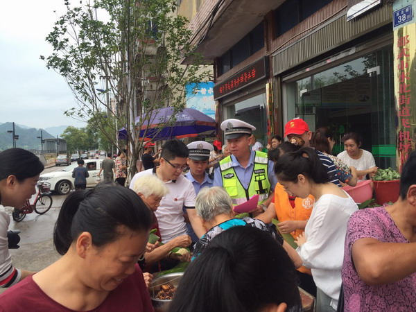 ?本網訊? 端午佳節到來之際,為弘揚中華傳統文化,增進鄰里和諧,6月13日上午,水北街道飛機坪社區開展以“我們的節日——粽享平安·與愛同行”為主題的端午便民活動。社區共建單位及孝心養老服務中心、視特佳視力防控中心等參加了活動。各小區居民組成多支包粽子隊伍,在包粽子的過程中大家互相交流,互相學習,增近了鄰里之情。來自各行業的志愿者們在現場為居民提供義診、維修小家電、洗眼、護眼等志愿服務。市交警隊及水北街道食安辦、道安辦、衛計辦等部門的志愿者,為群眾提供食品安全、道路安全、消防安全、移風易俗、計劃生育等方面的咨詢服務,詳細為群眾解答生活中遇到的難題,居民們紛紛表示非常感謝社區以此方式歡度傳統佳節,讓居民們共享和諧歡樂的端午佳節。(黎艷) ? ? ?