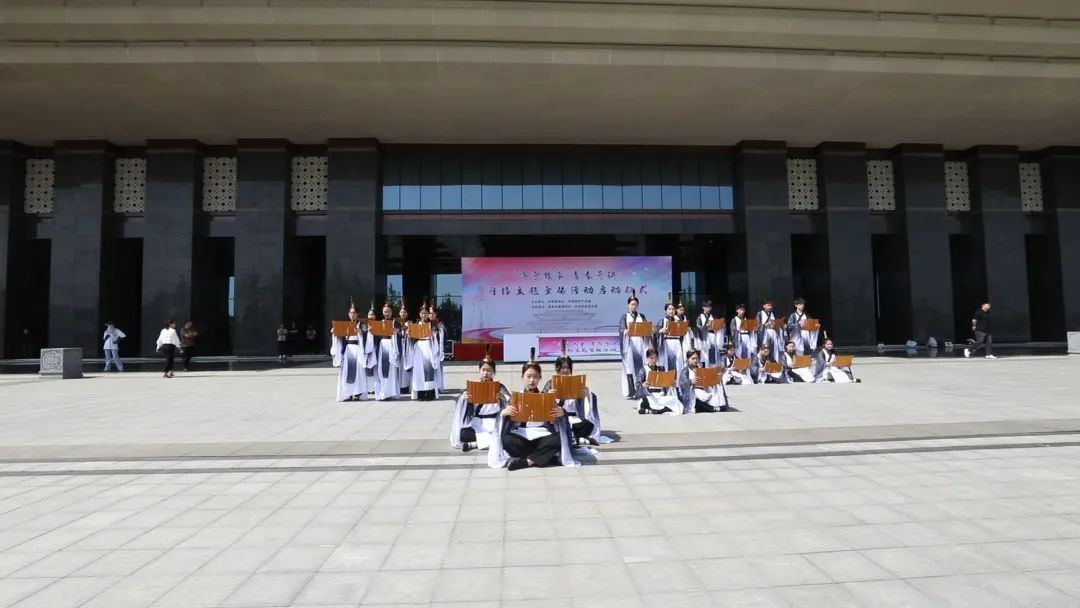 啟動儀式結束后,曲阜師范大學、濟寧學院、曲阜遠東職業技術學院的學生們帶來舞蹈快閃表演。隨后,與會師生參觀了孔子博物館,并在打卡區拍攝制作短視頻。