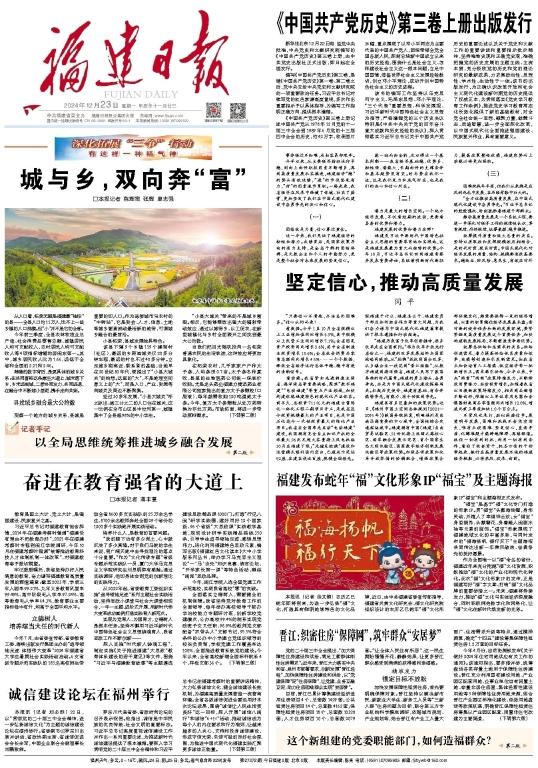 本報訊 (記者 徐文錦) 農歷乙巳蛇年即將到來,為進一步弘揚“福”文化,打造具有鮮明地域特色的文化品牌,近日,由中共福建省委宣傳部指導,福建省炎黃文化研究會、福文化研究院組織設計的農歷乙巳蛇年“福”文化形象IP“福寶”和主題海報正式發布。 “福寶”是基于“福”文化專門打造的形象IP。男“福寶”頭戴海浪帽,身形靈動,并植入了幸福祥云紋;女“福寶”身姿娟秀,頭戴簪花,身著融入閩劇水袖等元素的服飾。“福寶”形象展現了福建地域文化的豐富多彩,與同時發布的“福海揚帆 福行天下”主題海報共同傳達出新一年乘風破浪、奮勇爭先的美好愿景。 作為全國唯一以“福”命名的省份,福建近年來充分挖掘“福”文化資源,積極推動“福”文化的產業化和現代化轉化。此次“福”文化形象IP的發布,正是福建寫好“福”字文章、打響“福”文化品牌的重要舉措之一。未來,福建將持續發力,推動“福”文化與實體經濟深度融合,同時積極擁抱數字化和網絡化,讓“福”文化在新時代煥發新的光彩。